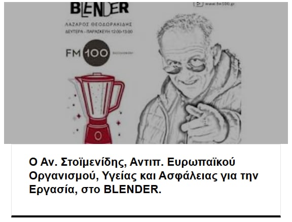 Συνέντευξη του προέδρου της ΟΣΕΤΕΕ, Ανδρέα Στοϊμενίδη στο δημοσιογράφο Λάζαρο Θεοδωρακίδη στην εκπομπή Blender στο FM 100 με θέμα το Εργασιακό Νομοσχέδιο.