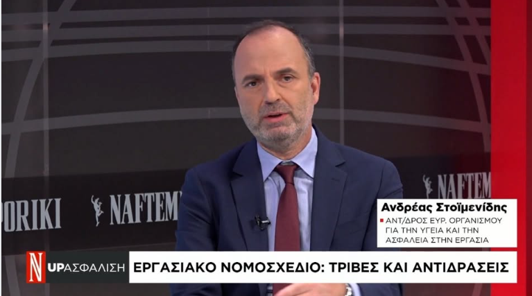 Στην ομιλία του ο Ανδρέας Στοϊμενίδης τόνισε ότι σε αντίθεση με την υπόλοιπη Ευρώπη η κατάσταση στα θέματα Υγείας και Ασφάλειας στην Εργασία (ΥΑΕ) στην Ελλάδα, επιδεινώνεται.
